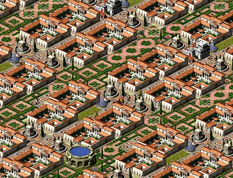 建筑这块虽然不能和现在的游戏相提并论,但在当时我觉得做的还是非常细致的。就说供水吧,前期只能挖水井,可到了后期,市民嫌井水不干净,就得建蓄水池和引水渠。很多新手建引水渠时,不注意地势的高低,结果水根本流不到城里,白搭了一堆钱,只能推倒重建。还有住宅升级,从小帐篷升到豪华别墅,得满足一堆条件,附近要有澡堂、学校、神庙,仓库里还得有葡萄酒、陶器这些物资。要是物资断了,别墅能一夜变回茅屋。