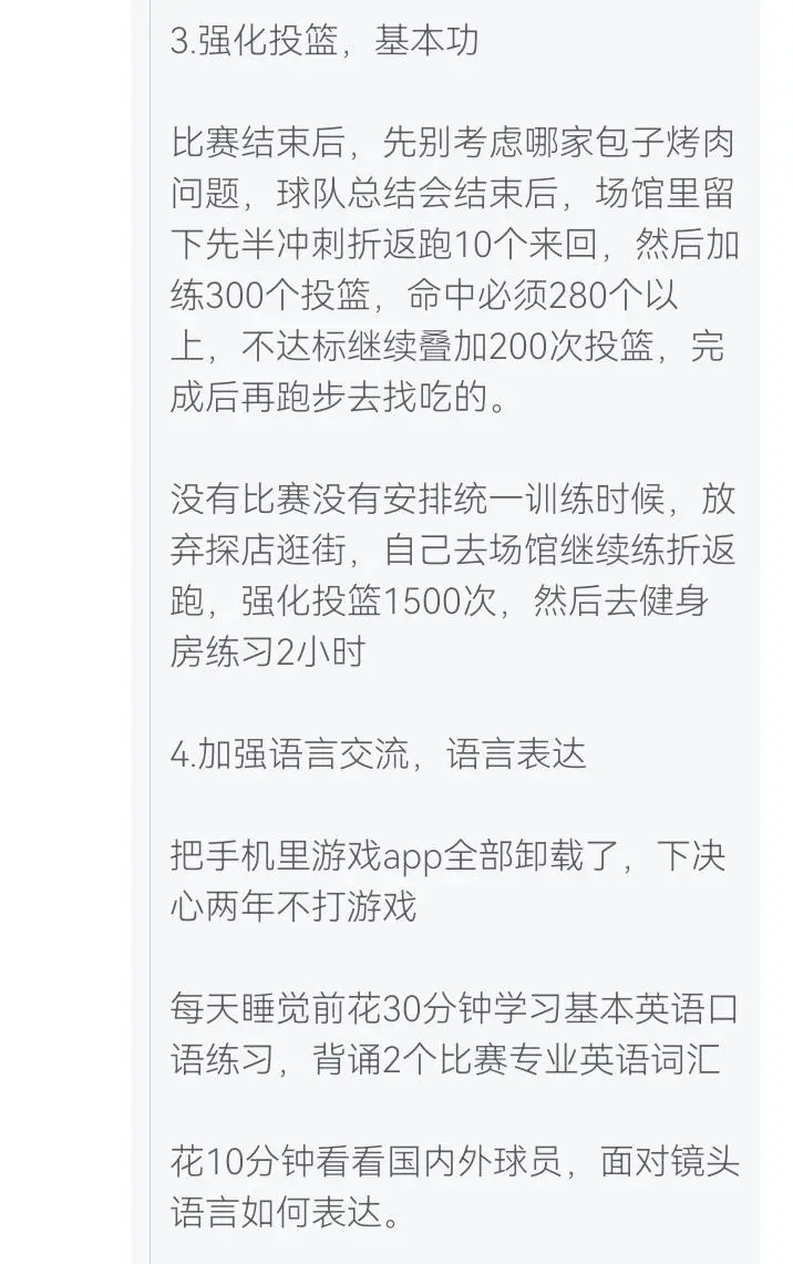 杨瀚森就养成习惯天天冲刺跑步5.6公里,高强度投2000个篮,户外做300个俯卧撑,400个高抬腿,比在健身房听专家教练指导效果好。