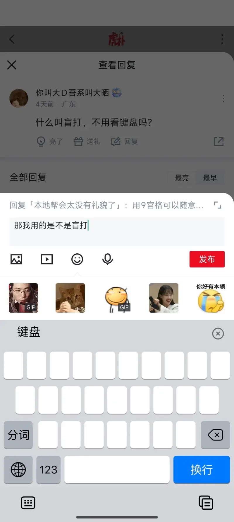 我这句话就是盲打的