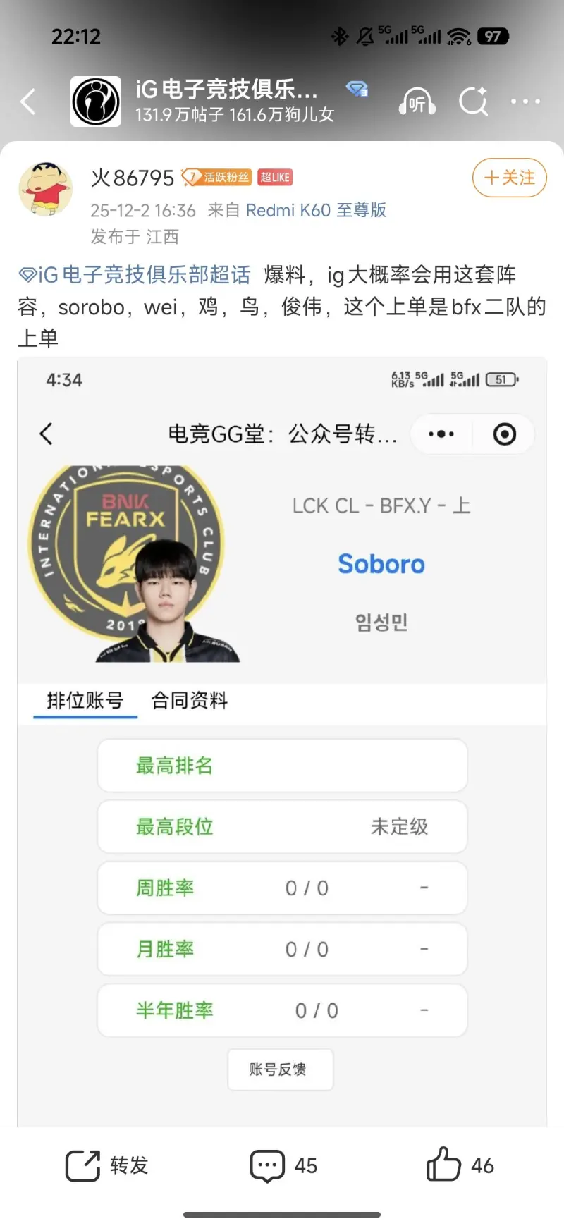 我去搜了下原来是bfx的二队上单,真有你的ig