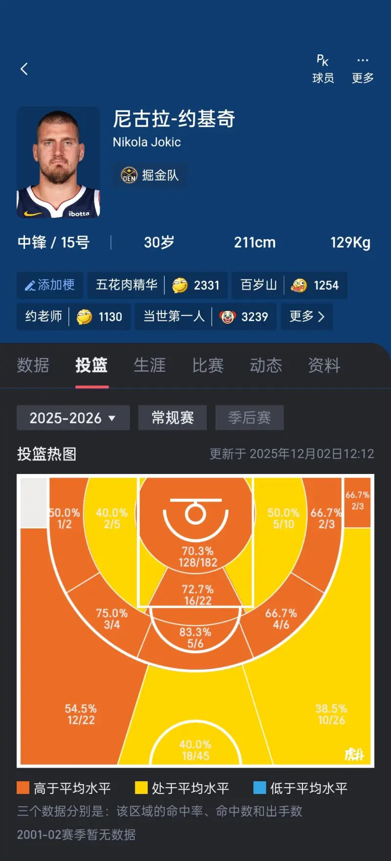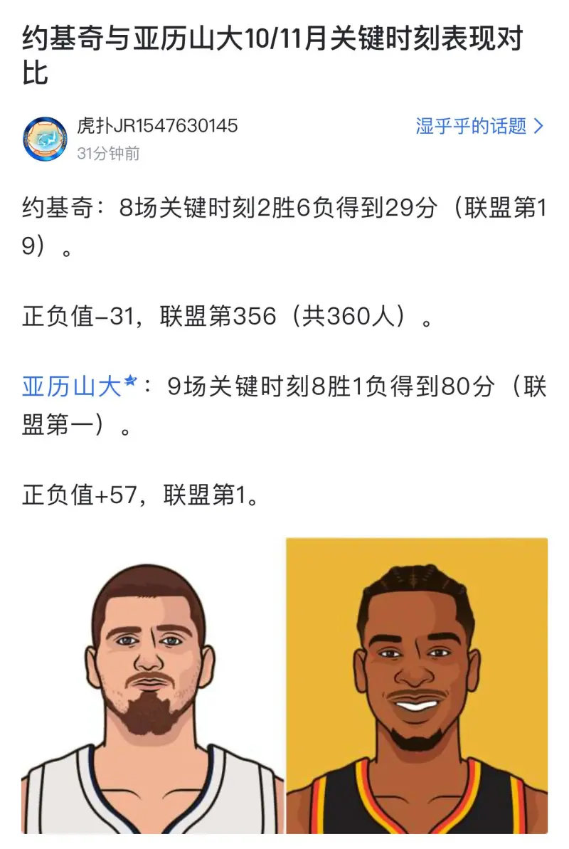 在此期间,约基奇场均28.9分12.4篮板10.9助攻,球队14胜5负。