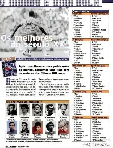 上世纪末的排名 尤西比奥和普拉蒂尼是一档的 穆勒进前十都费劲