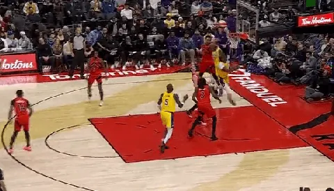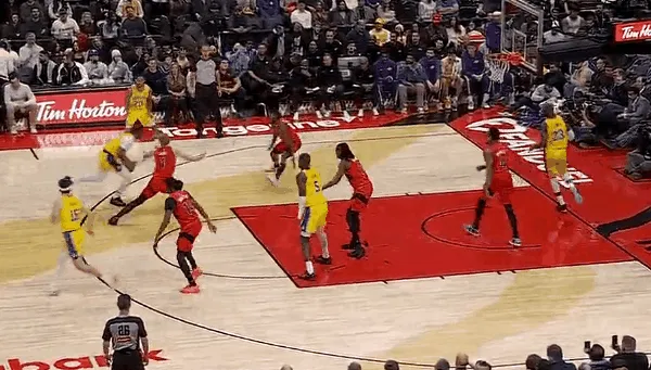 NBA常规赛,湖人客场对阵猛龙的比赛正在进行中。