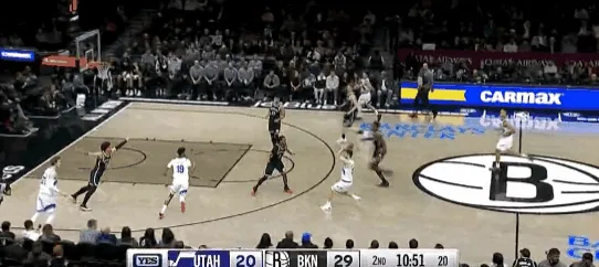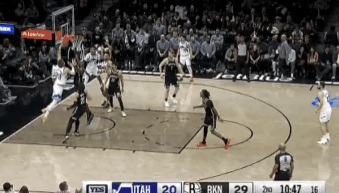 NBA常规赛,爵士对阵篮网的比赛正在进行中。