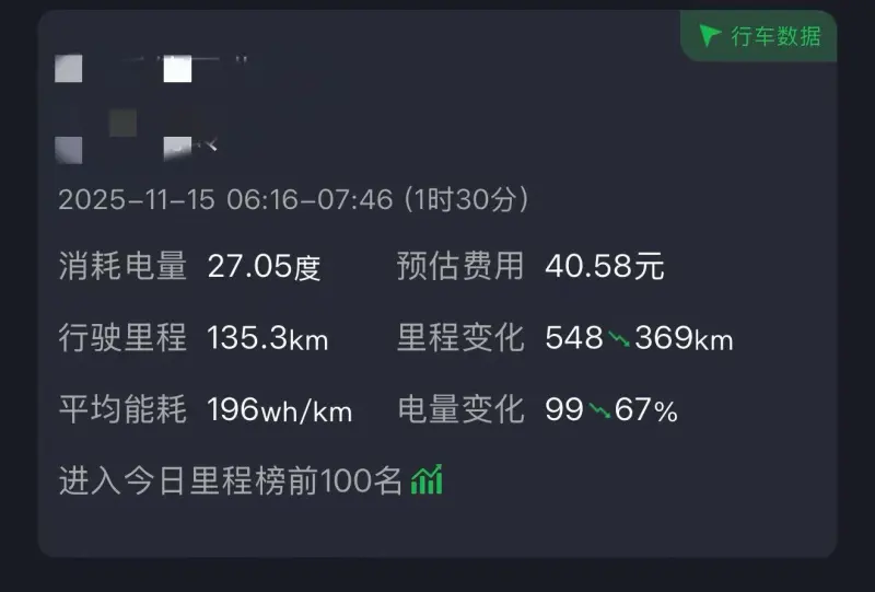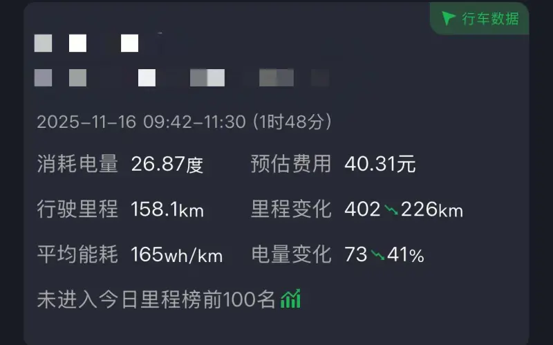 1、高速续航:不知道是不是电车通病,反正高速跑起来表显续航比实际跑的公里数一般要多掉几十公里,我头一次跑高速因为我没用过智驾,不太敢用,所以基本是AP和自己开搭着来,表显比实际续航多掉了44公里,第二次在基本全程AP辅助驾驶的情况下,表显比实际续航只多掉了18公里,但仍没有完全达到我心里的预期。