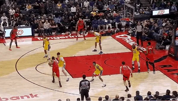 NBA常规赛,猛龙主场迎战湖人的比赛正在进行中。