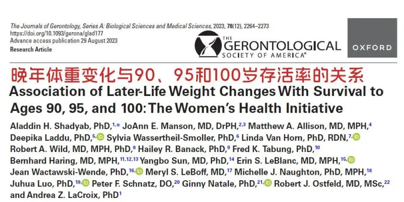 ④Association of Later-Life Weight Changes With Survival to Ages 90, 95, and 100: The Women’s Health Initiative. The Journals Of Gerontology: Series A. doi: 10.1093/gerona/glad177 http://www.wlchinahz.com/news/x77709.html