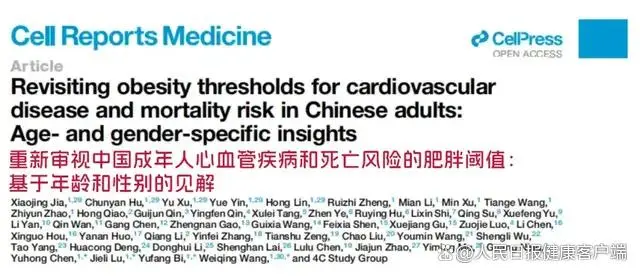 ①Revisiting obesity thresholds for cardiovascular disease and mortality risk in Chinese adults: Age- and gender-specific insights. Cell Rep Med. 2025 Aug 22:102309. doi: 10.1016/j.xcrm.2025.102309.http://www.wlchinahc.com/news/