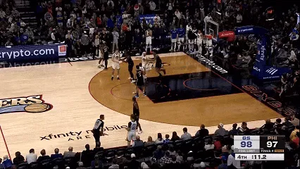 然后就是纯纯失败的第三次边线球了,这次场上四名勇士球员两两分组,各自待在两个半场,按说,空间拉的是足够大了。可惜,这也带来相对较长的启动时间和跑动距离,左侧的波斯特并未给希尔德完成掩护就往远端跑,被对方完全预判到位,右侧的小库里和梅尔顿同样被对手死死挡住。梅尔顿好不容易反跑出接球空间,却被迎面跑来接应的希尔德破坏,人仰马翻。