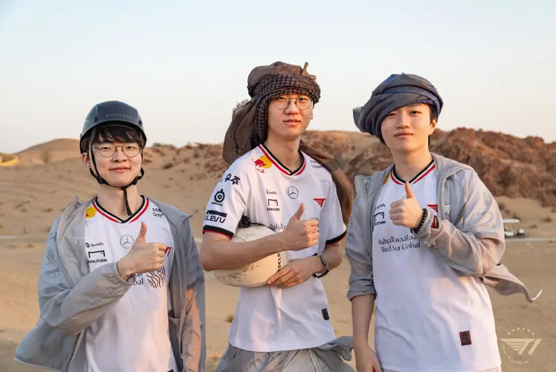 虎扑12月05日讯 T1官方分享队员沙特度假返图第二弹