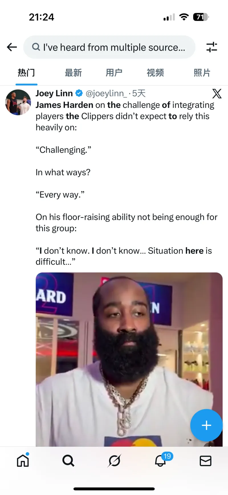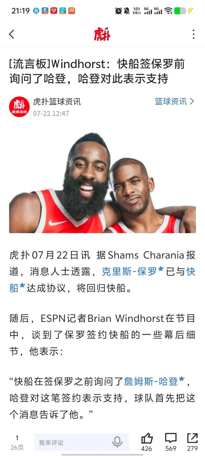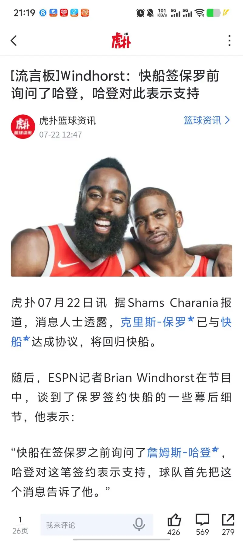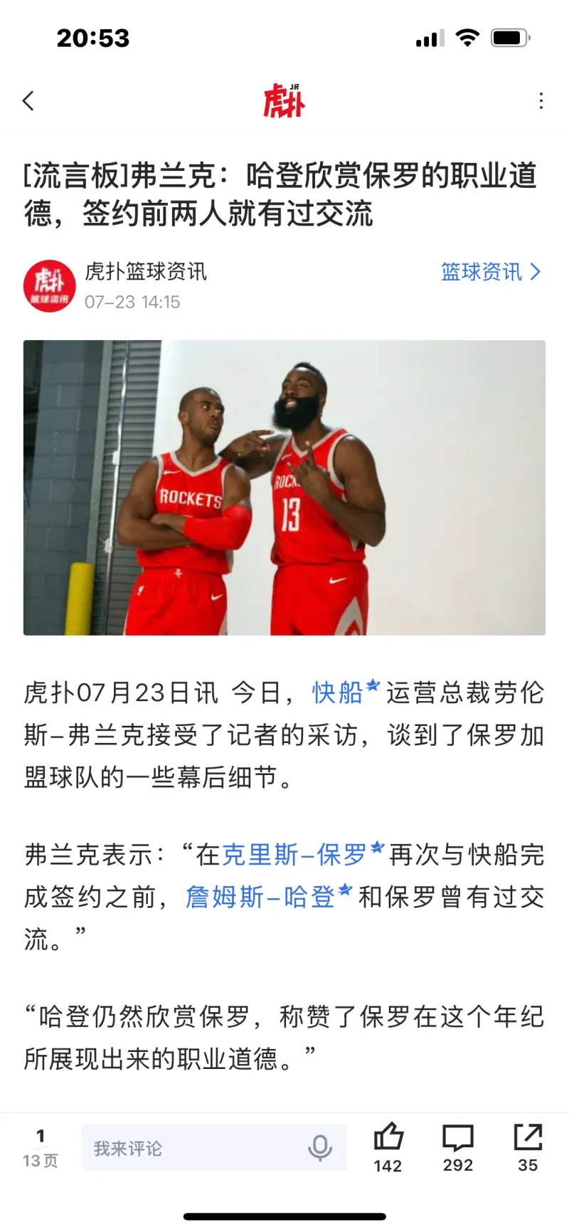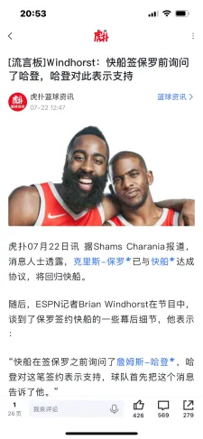 “我从多家消息源那里听说,詹姆斯-哈登当初对于快船签下克里斯-保罗持反对意见,他就是那些‘呃……我有点不确定’其中的一个。”Kevin O'Connor如此说道。