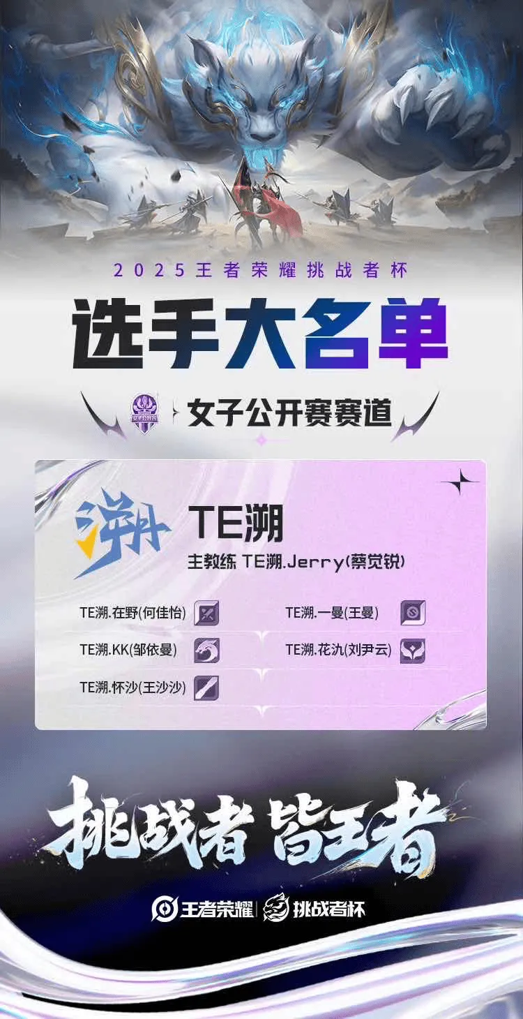 作为王者荣耀官方唯一女子专业电竞赛事,本届女子公开赛总决赛总奖金高达 100万元,汇聚6支顶尖战队同台竞技。TE溯能突出重围,离不开队员们的默契配合:TE.怀沙两度斩获FMVP,中路的深厚功底搭配多英雄大国标、TE.一曼的强力输出、TE.花汣的灵动支援、TE.在野的边路博弈、TE.KK的野区掌控,让战队形成“统治级”战力,成为女子电竞的标杆。