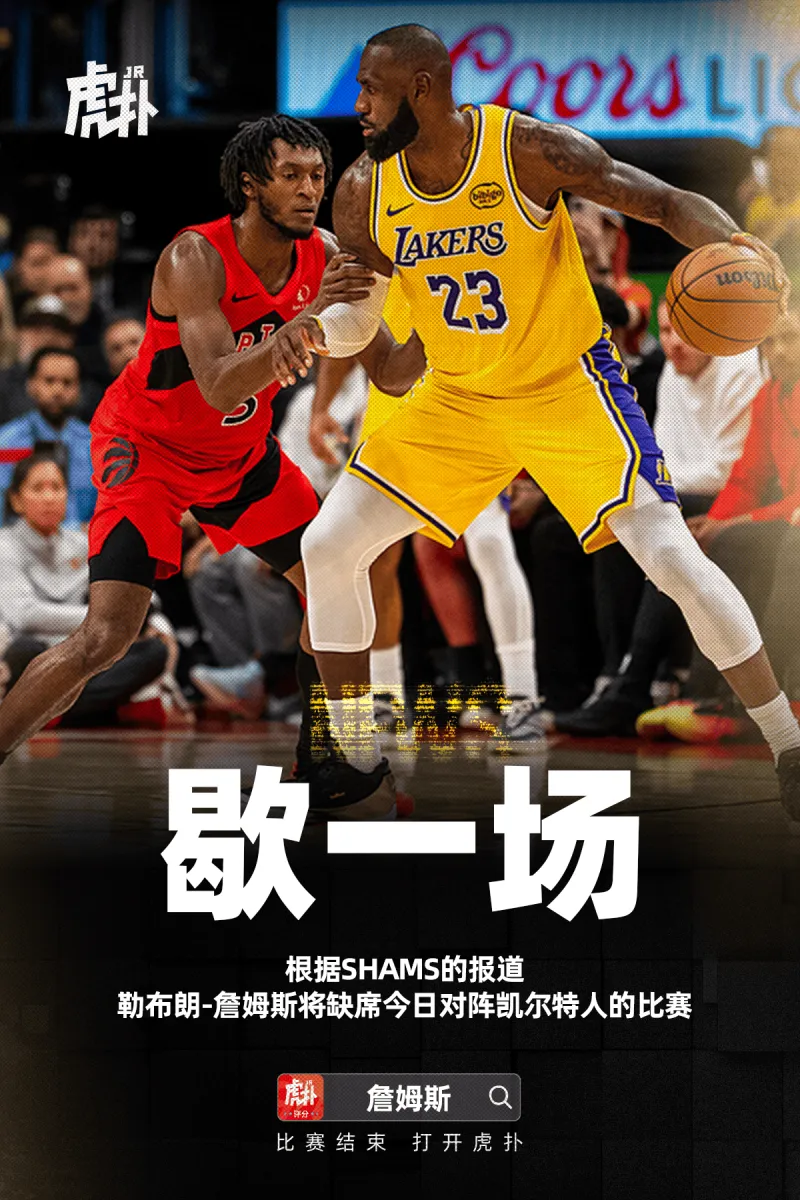 虎扑12月06日讯 根据美国记者Shams的消息,詹姆斯将缺席今日对阵凯尔特人的比赛。