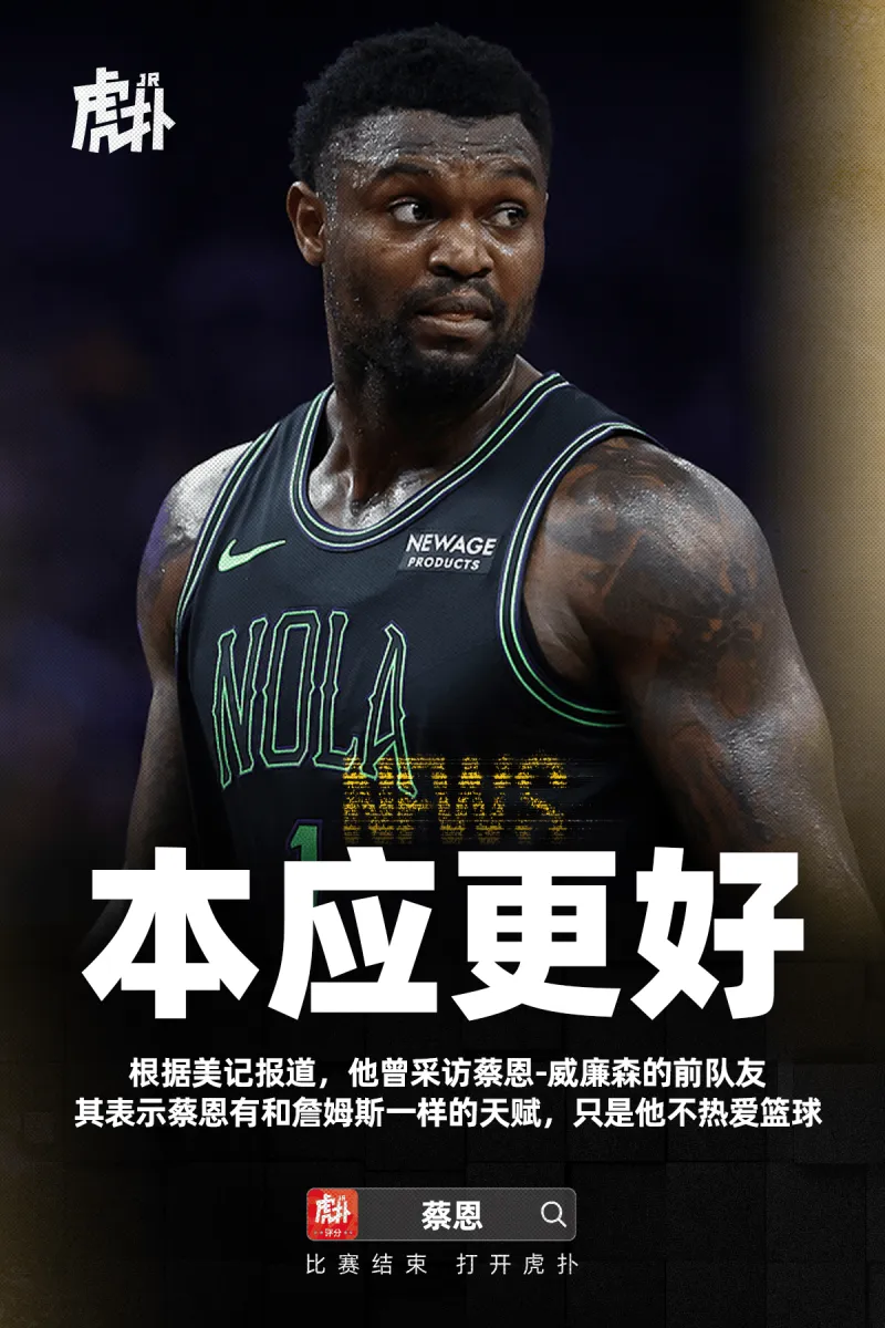 Marc Spears说道:“我和蔡恩的一位前队友聊过,他说蔡恩的天赋大到实际上是勒布朗-詹姆斯级别的天赋。他曾认为蔡恩甚至可以比勒布朗更强。但他说:‘可他不像勒布朗-詹姆斯那样热爱篮球。’”