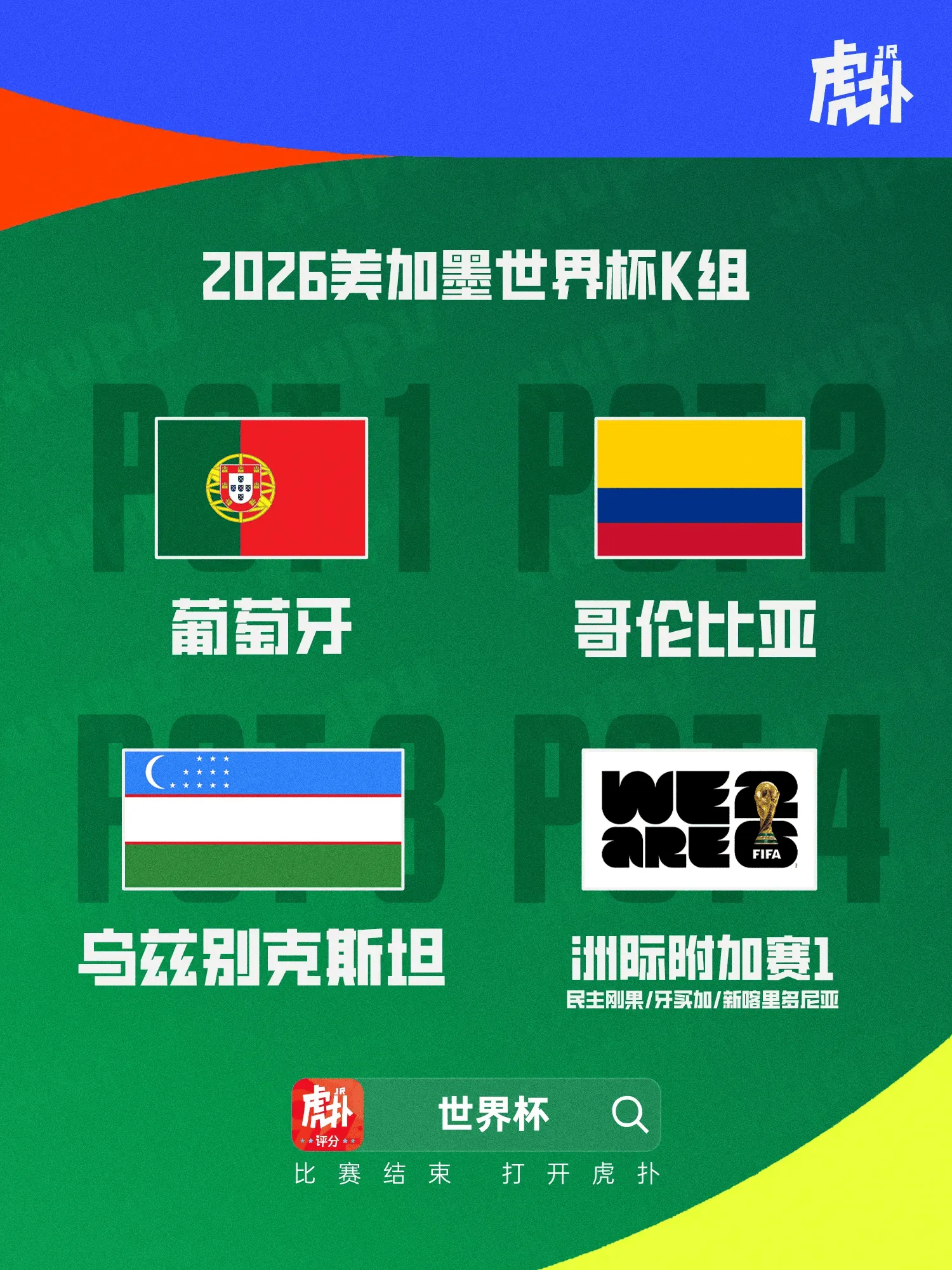 虎扑12月06日讯 2026美加墨世界杯分组抽签出炉,阿根廷落位J组,葡萄牙落位K组。