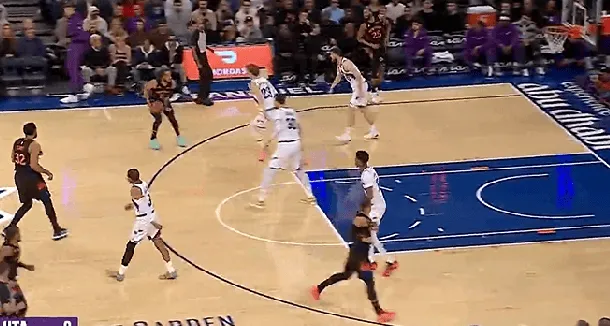 NBA常规赛,尼克斯对阵爵士的比赛正在进行中。
