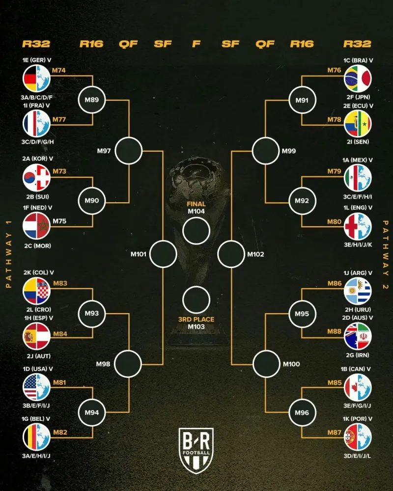 相较于小组赛,淘汰赛的潜在剧情更令人期待。梅西与 C 罗大概率将迎来职业生涯最后一次世界杯征程,两人若想上演 “世纪对决”,需满足简单却严苛的条件:阿根廷、葡萄牙需分别以小组头名出线,并连胜两场淘汰赛跻身八强,届时诸神黄昏的终极碰面将成为足坛永恒的经典。