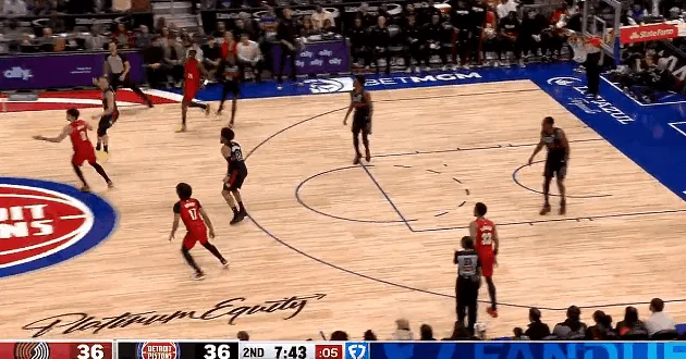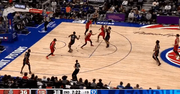 NBA常规赛,开拓者对阵活塞的比赛正在进行中。