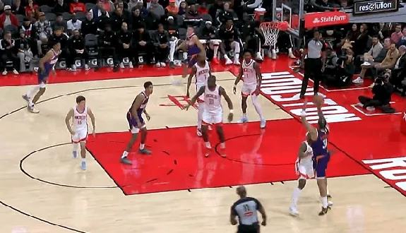 NBA常规赛,火箭对阵太阳的比赛正在进行中。