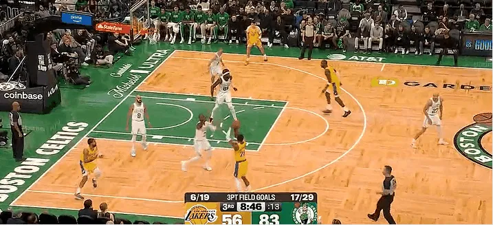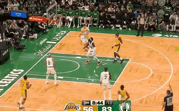 NBA常规赛,湖人对阵凯尔特人的比赛正在进行中。