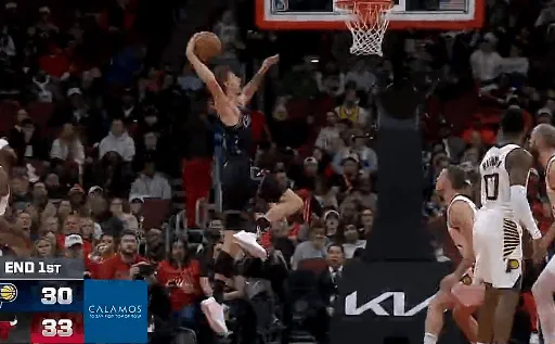 第一节比赛中,布泽利斯底线起飞拉满弓战斧劈扣,首节拿到10分。