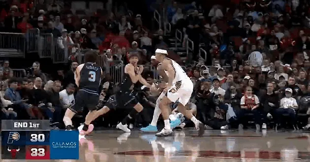 NBA常规赛,步行者对阵公牛的比赛正在进行中。
