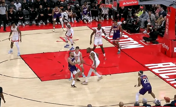NBA常规赛,火箭对阵太阳的比赛正在进行中。