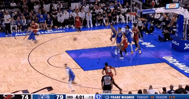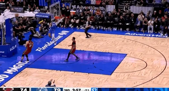 NBA常规赛,魔术对阵热火的比赛正在进行中。