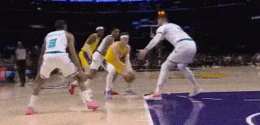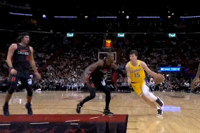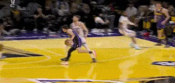 第三节比赛,里夫斯无惧身体对抗滞空打进2+1,湖人将分差缩小至20分。