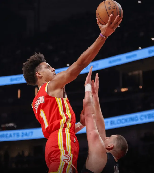 ESPN分享数据:杰伦-约翰逊上半场砍下三双,成为自97年有详细数据统计以来,第六位上半场砍下三双的球员。