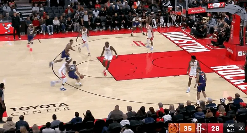 第二节比赛,吉莱斯皮突破急停跳投命中,太阳领先9分打停火箭。