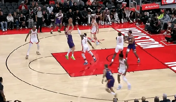 NBA常规赛,火箭对阵太阳的比赛正在进行中。