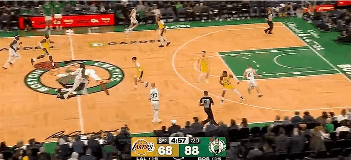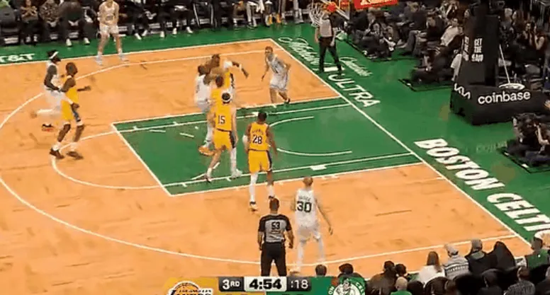 NBA常规赛,湖人对阵凯尔特人的比赛正在进行中。