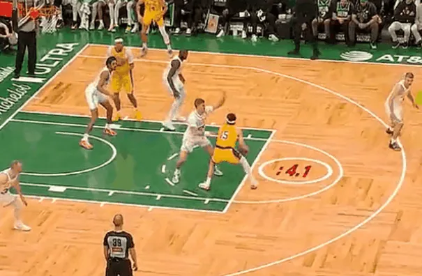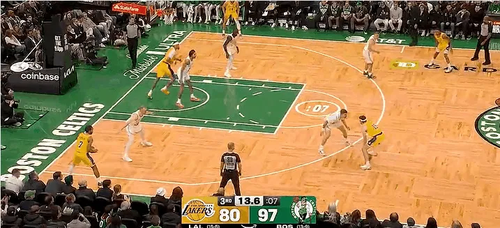 NBA常规赛,湖人对阵凯尔特人的比赛正在进行中。