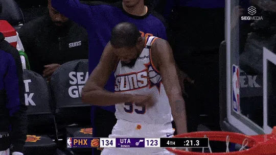 第二节比赛,杜兰特突破急停后仰中投打成2+1单节12分,火箭反超太阳2分。