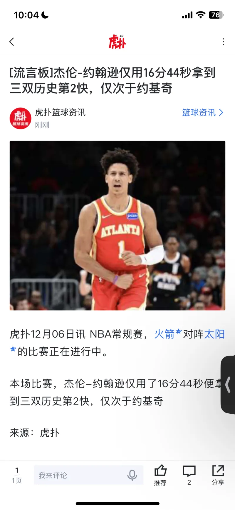 [流言板]杰伦-约翰逊仅用16分44秒拿到三双历史第2快,仅次于约基奇由虎扑篮球资讯 发表在篮球资讯 https://bbs.hupu.com/502