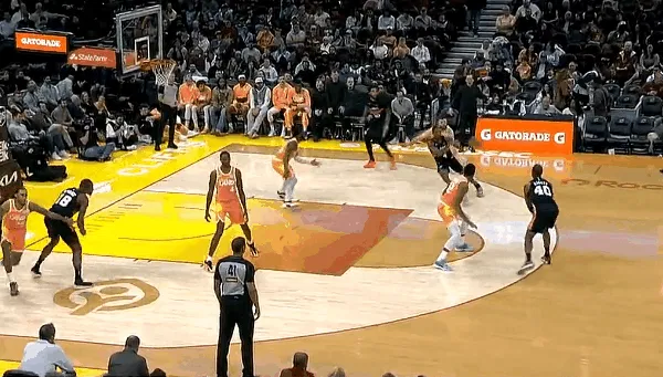比赛的第三节,福克斯卷切跑位接球,转身直接干拔跳投打进2+1。