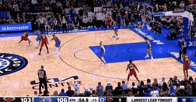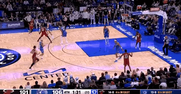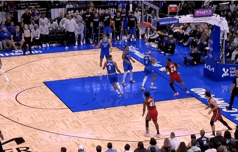 NBA常规赛,魔术对阵热火的比赛正在进行中。