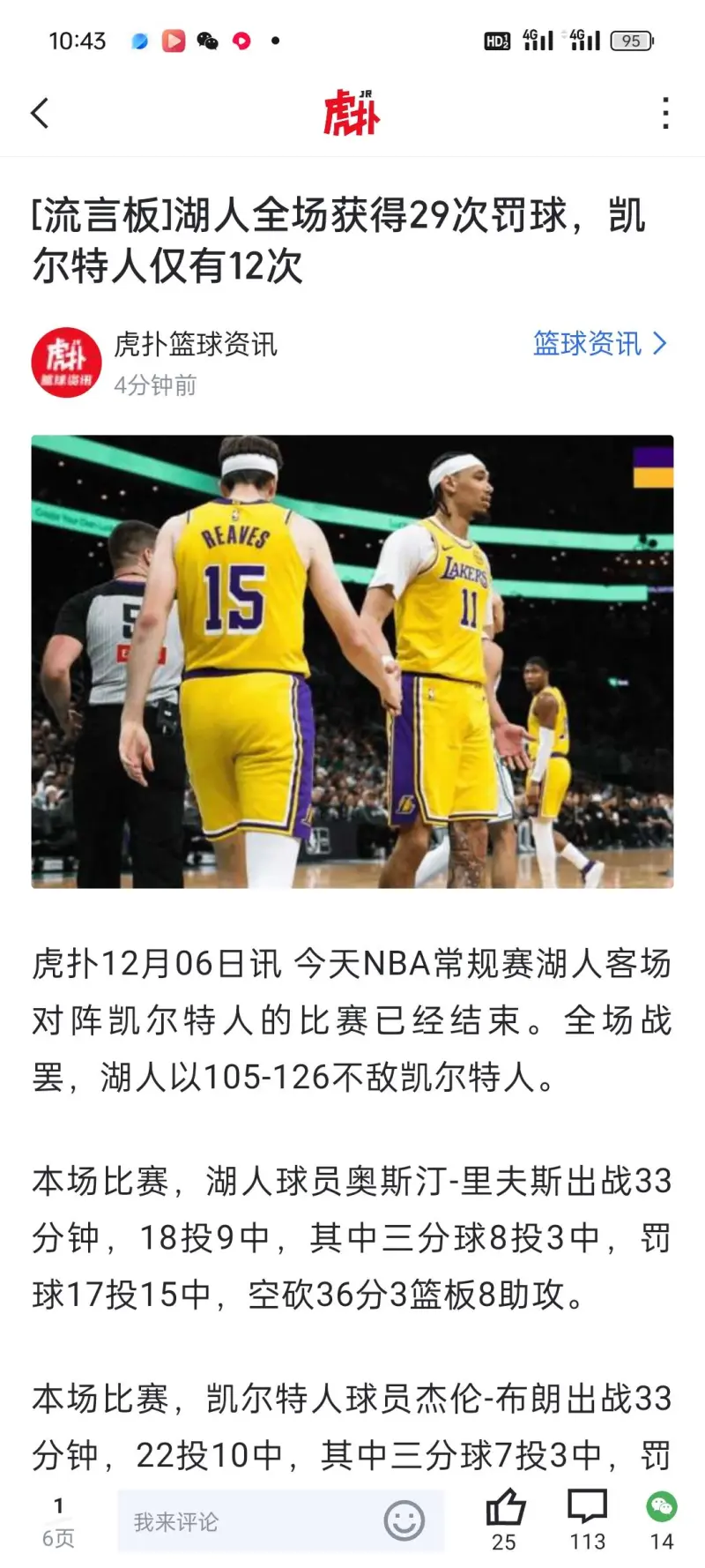 虎扑12月06日讯 今日NBA常规赛,凯尔特人主场126-105战胜湖人。