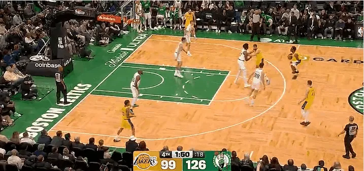NBA常规赛,湖人对阵凯尔特人的比赛正在进行中。