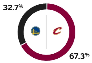 赛前,美媒ESPN预测本场比赛,勇士胜率为32.7%,骑士胜率为67.3%。