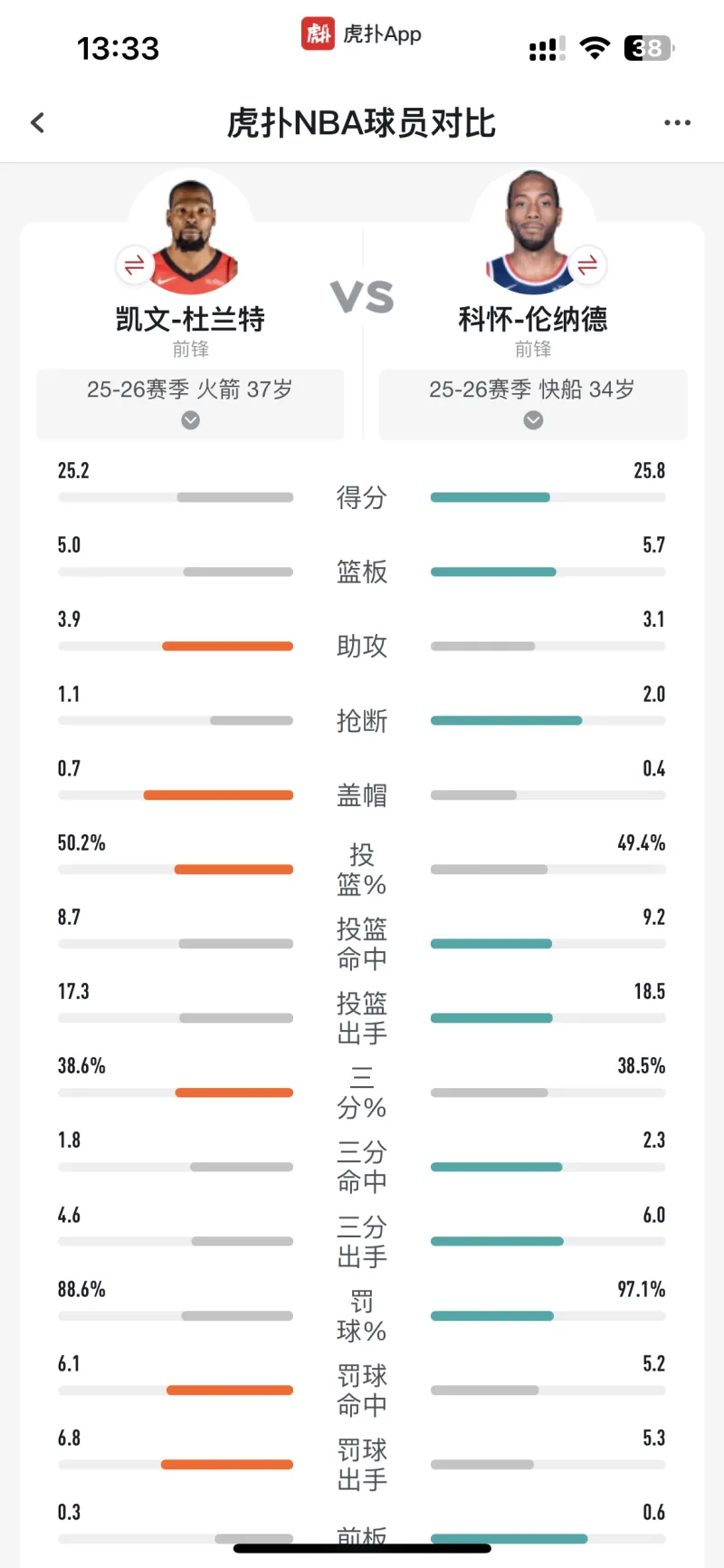 赛季至今,杜兰特场均出战35.6分钟,砍下25.2分5篮板3.9助攻,投篮命中率50.2%、三分球命中率38.6%、罚球命中率88.6%。