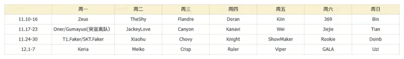 1. 四周每日一期,评选一个知名选手的招牌英雄,候选池为其生涯使用次数较多,或令人印象深刻的英雄。