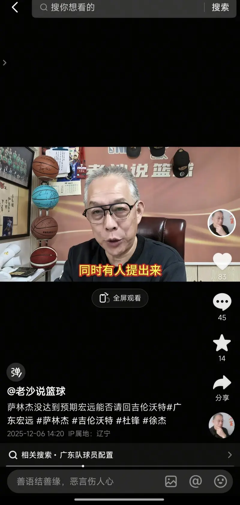 这位自媒体研究cba球队研究是多年,每天直播都有笑料。特别是广东,深研广东20年,每天都得看他直播,笑的合不拢嘴。