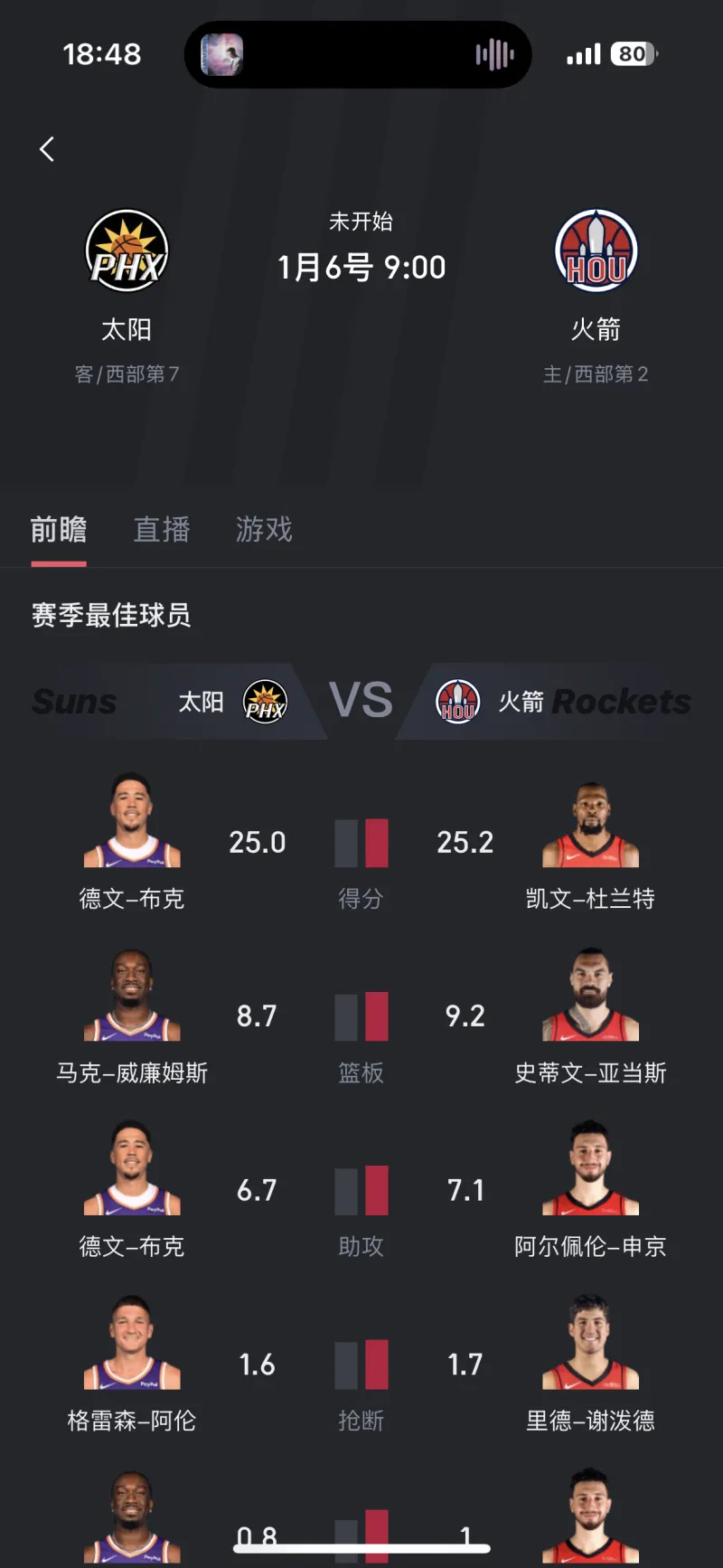 根据赛程,火箭本赛季先后主客场战胜太阳,双方的下一场将在明年1月6日举行。