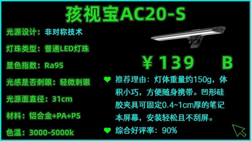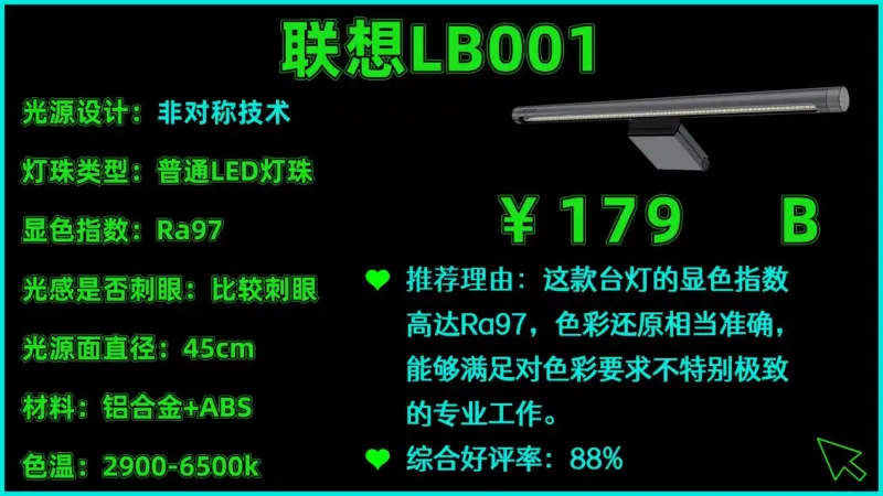 1、光线均匀+非对称光路:好灯应该把光集中照在桌面,不直射屏幕和眼睛,避免眩光和屏幕反光。