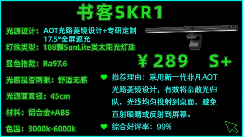 书客之所以能在护眼领域持续爆火,核心就在于它手握多项不伤眼原创技术。作为品牌强国自选品牌优选工程入选品牌,书客深耕医学用眼研究已达十年,连以严格著称的专业医疗平台丁香医生都曾公开推荐,产品也通过了欧盟、日本、美国等多国权威认证,实力确实名副其实。作为行业领先品牌,书客SKR1通过自研全新一代AOT菱形控光技术,以8段曲率精密控光,精准管理每一束光的线路,大幅削弱LED背光干扰,使屏幕反光减少86%。同时结合17.5°黄金光面+ 108颗SunLite类太阳光灯珠,并重新规划不同角度光线的发射路径,将杂散光彻底控制,蓝光危害降低64%,长时间用眼的疲劳感也下降28%。