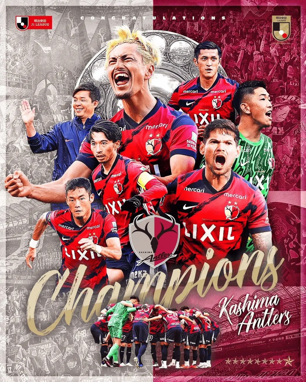 虎扑12月06日讯 今天下午,J1联赛完成了第38轮比赛。最终,鹿岛鹿角2-1战胜横滨水手,以1分优势力压柏太阳神夺冠,时隔9年夺得俱乐部历史第9座联赛冠军。