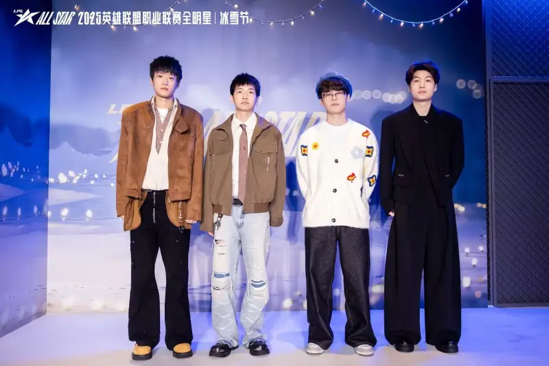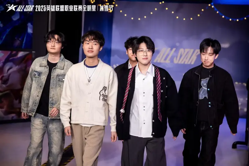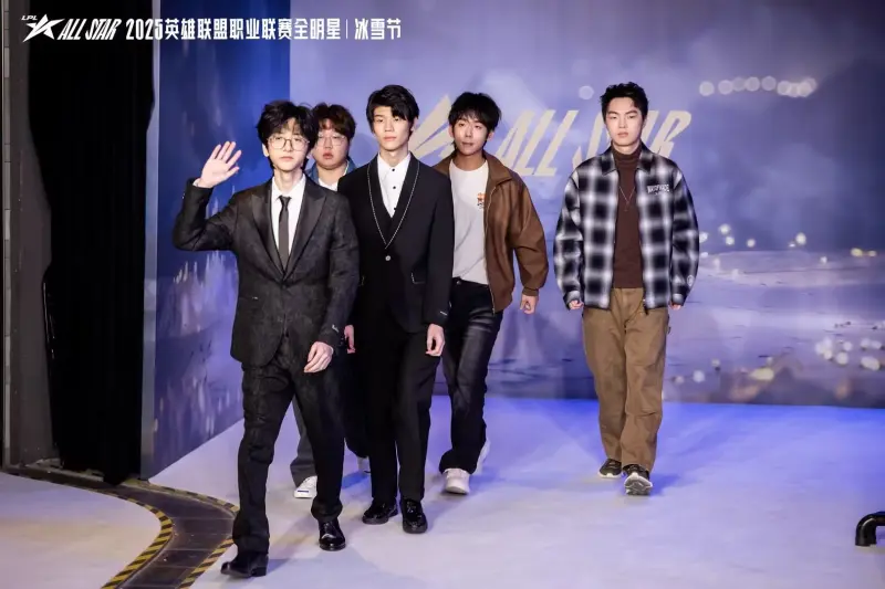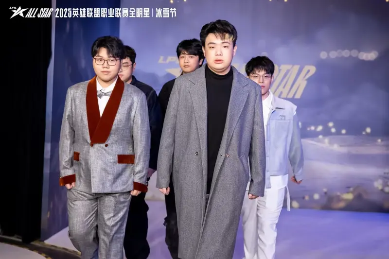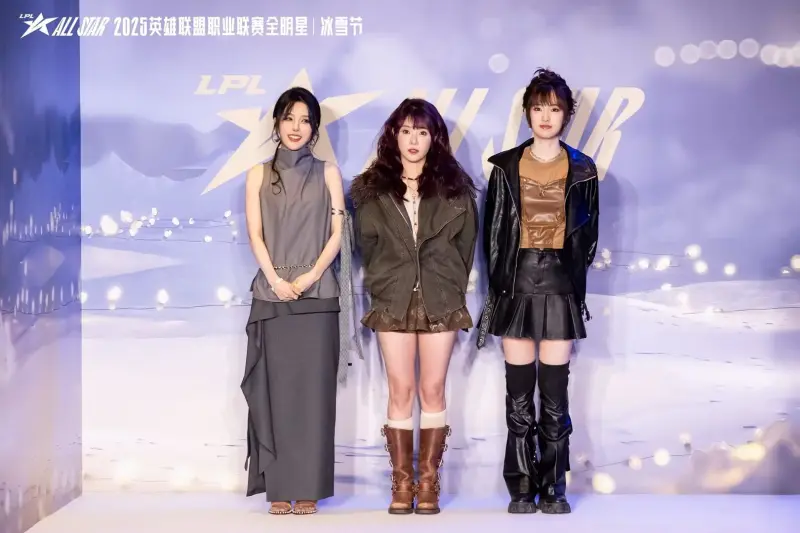 虎扑12月06日讯 LPL选手官方发布2025LPL全明星冰雪节红毯现场返图,配文:红毯限定皮肤加载完成~