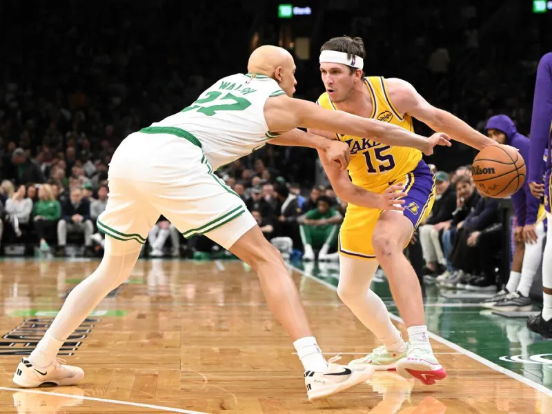 赛后,湖人球员奥斯汀-里夫斯接受媒体采访,谈到了本场比赛凯尔特人球员乔丹-沃尔什的防守表现。